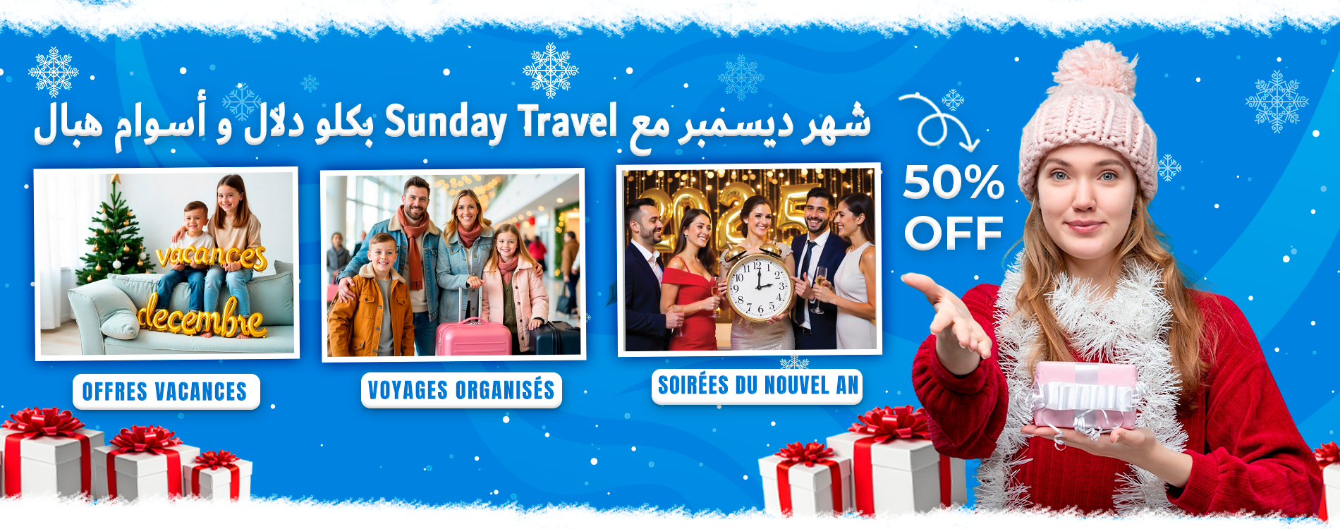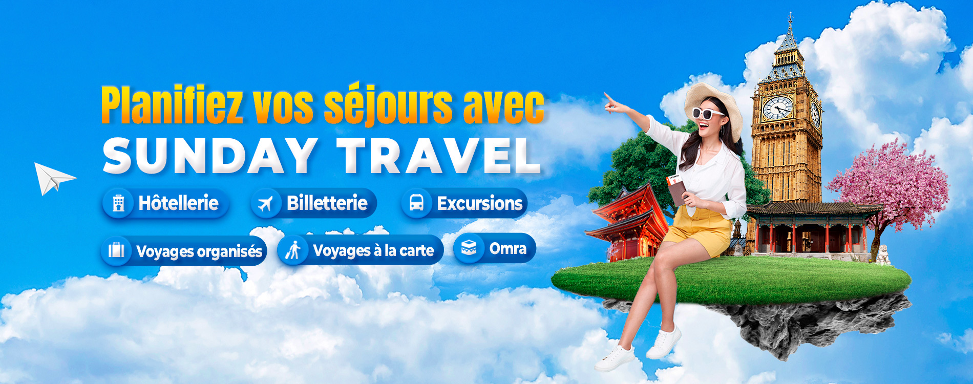 - Sunday Travel , votre Agence de Voyage en Tunisie en Ligne vous propose des Promotions sur vos Voyages et Séjours en Tunisie et dans le Monde avec les Meilleurs Prix et Services.